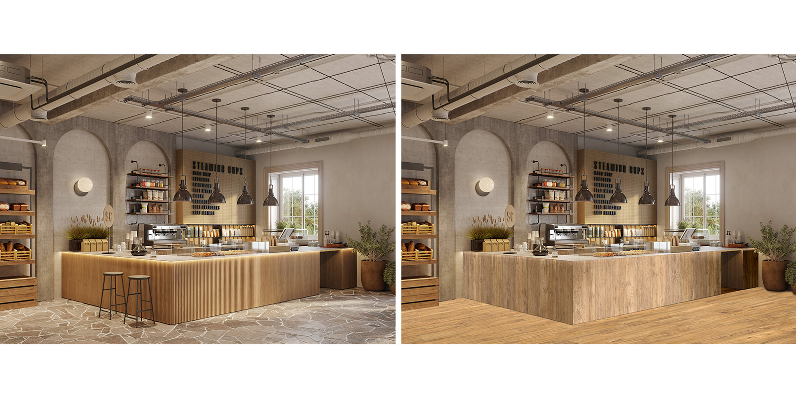 Aktuell betätigen wir uns gerade als virtuelle Fliensenleger. Aus diesem Grund beginnt die Bildreihe nach einer kurzen tierischen Solidarbekundung mit der Umgestaltung von Böden, Theken und Wänden 😉